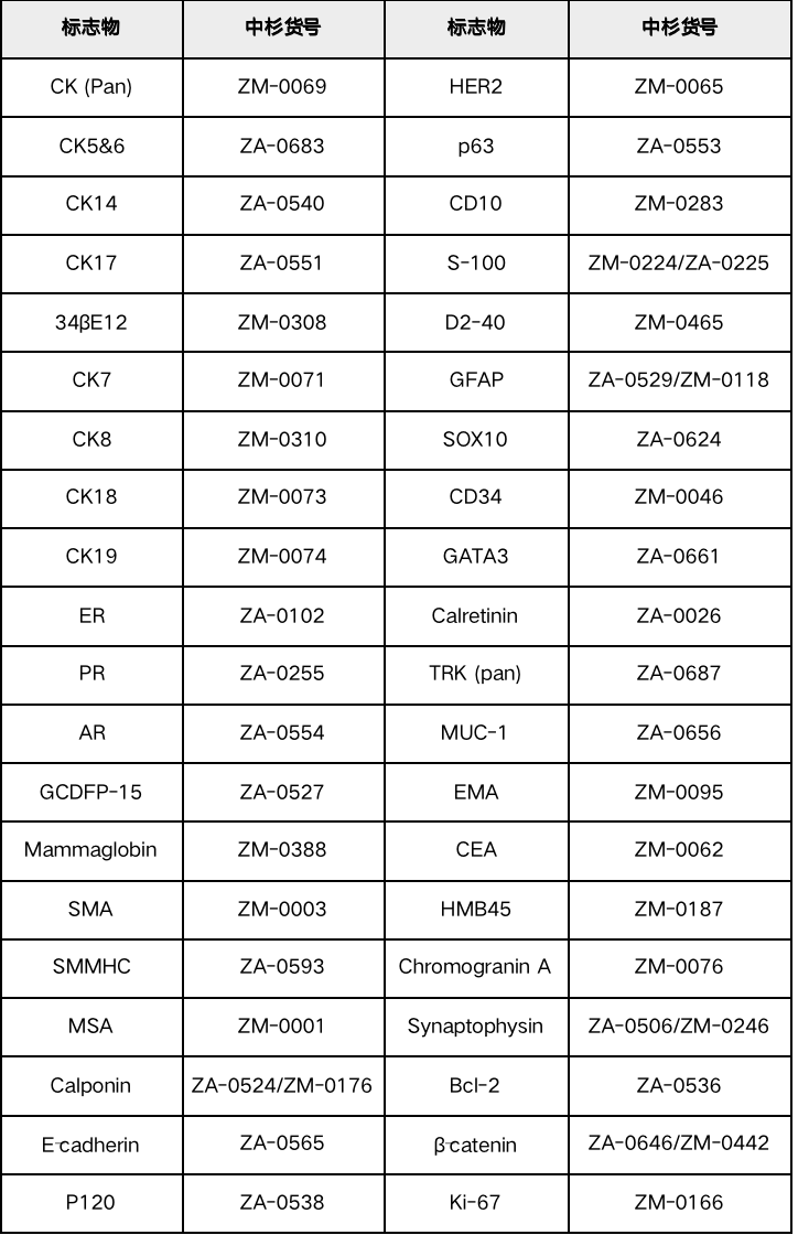 推薦使用的標(biāo)志物有CK(pan)、高相對(duì)分子質(zhì)量和低相對(duì)分子質(zhì)量細(xì)胞角蛋白、p63、SMA、CD34、β-catenin、ER/PR、FOXC1、TRPS1、Desmin、S100、Bcl-2、SOX10、HMB45等。